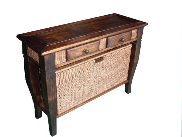 APARADOR DE MADEIRA COM 2 GAVETAS E 1 GAVETÃO DE FIBRA NATURAL JUNCO
