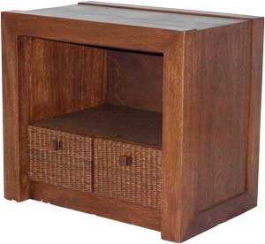 RACK DE MADEIRA COM 2 GAVETAS DE JUNCO.