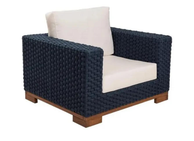 Poltrona em alumínio e madeira revestida em corda náutica