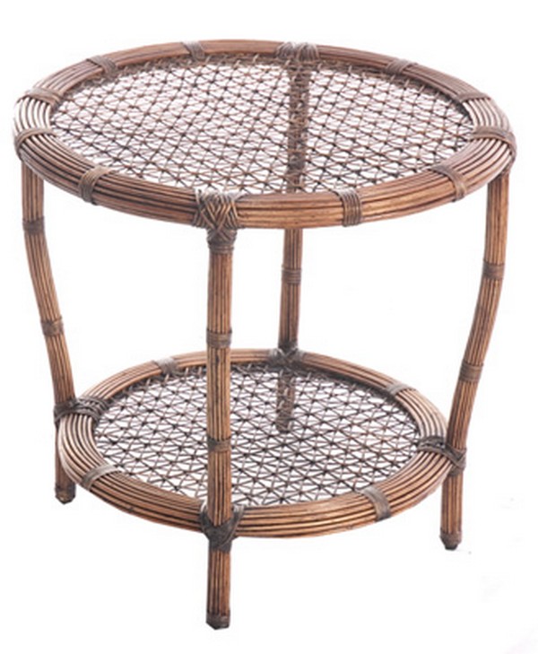 MESA LATERAL REVESTIDA COM FIBRA NATURAL RATTAN E DETALHES EM JUNCO.