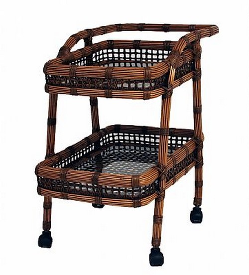CARRINHO DE CHÁ THA ESTRUTURA EM TUBO GALVANIZADO EM FIBRA NATURAL RATAN