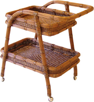 CARRINHO DE CHÁ COM ESTRUTURA EM TUBO GALVANIZADO E REVESTIDO COM FIBRA NATURAL RATTAN E JUNCO !