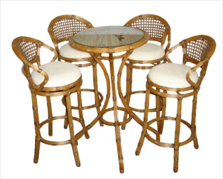 CONJUNTO MESA BISTRO COM 04 BANQUETAS ESTRUTURA EM TUBO GALVANIZADO REVESTIDO COM FIBRA NATURAL RATTAN C/JUNCO