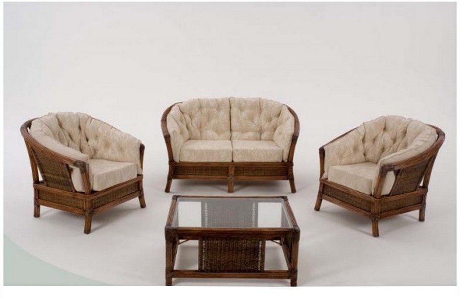 CONJUNTO SOFÁ 2 LUGARES 2 POLTRONAS 1 MESA DE CENTRO TODO REVESTIDO COM FIBRA NATURAL RATTAN E