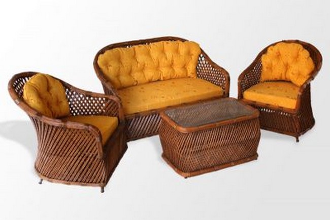 CONJUNTO DE FIBRA NATURAL RATTAN COM DETALHES EM JUNCO .